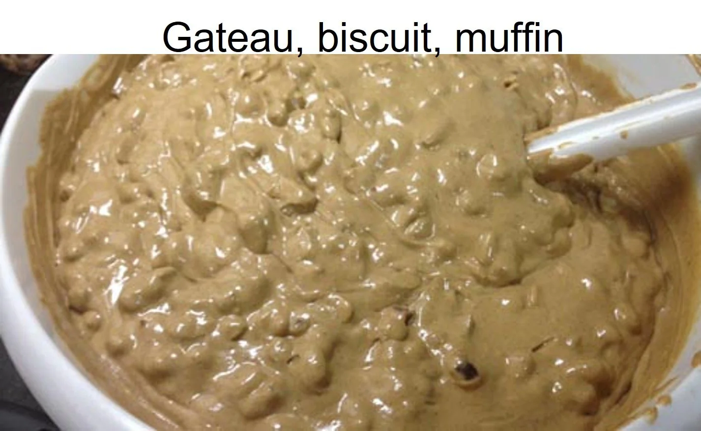 vous pouvez prendre n’importe quelle recette de gâteau, muffins, crêpes, biscuits, barres, etc.